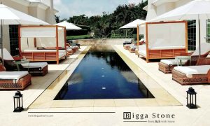 On Above picture we can see a Natural Green Color come from the Pool. If you want made your Pool like that, you can choose Green Sukabumi Stone for pool tiles and Lava Stone for Pool Deck. Some Hotel using White Limestone for the Pool deck to get a Classic White Color.