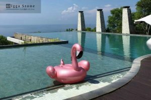 When you using the Right Material and Design, you will get a very beautiful and Elegant Appearance for your Swimming Pool. On above picture, we can see The Big pool from Peppres Seminyak Villa. The Big Pool has very hard design because has Bending and combination Green Stone and Lava Stone. Therefore, The Pool is look very Luxury and Amazing. Moreover The pool has many Green Tree likes Natural Area.